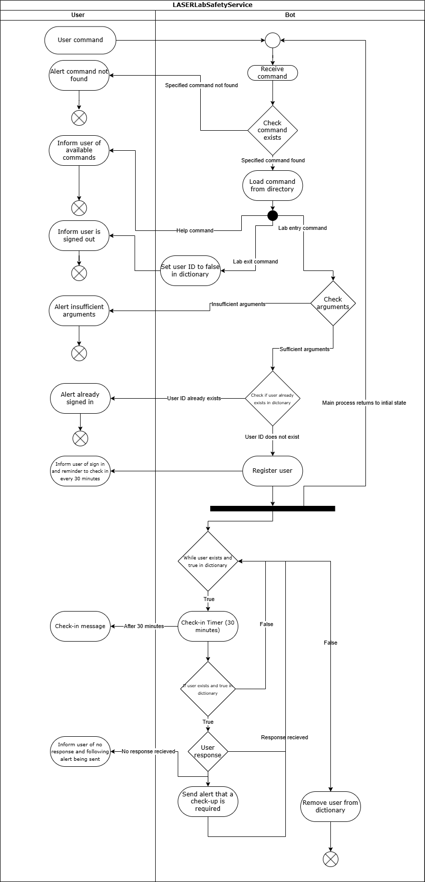 Enclosed below is the system activity diagram, visually illustrating the workflow of the LASER Safety Compliance Service: