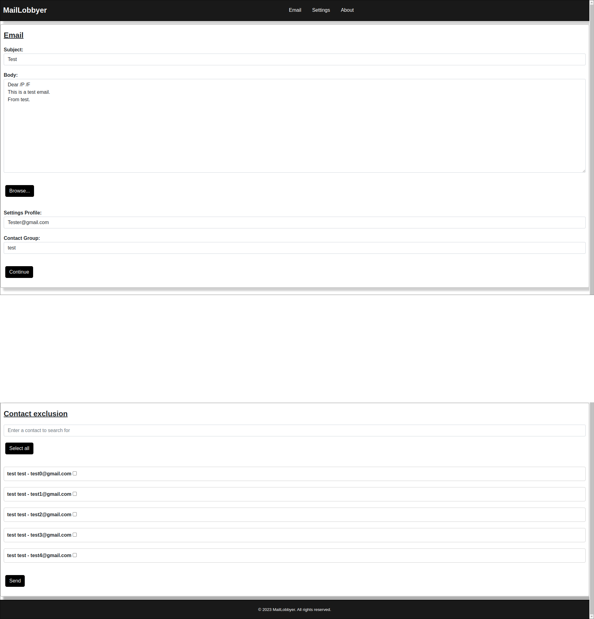 - The second stage of the main page allows exclusion of specific entries in the selected CSV emailing list.